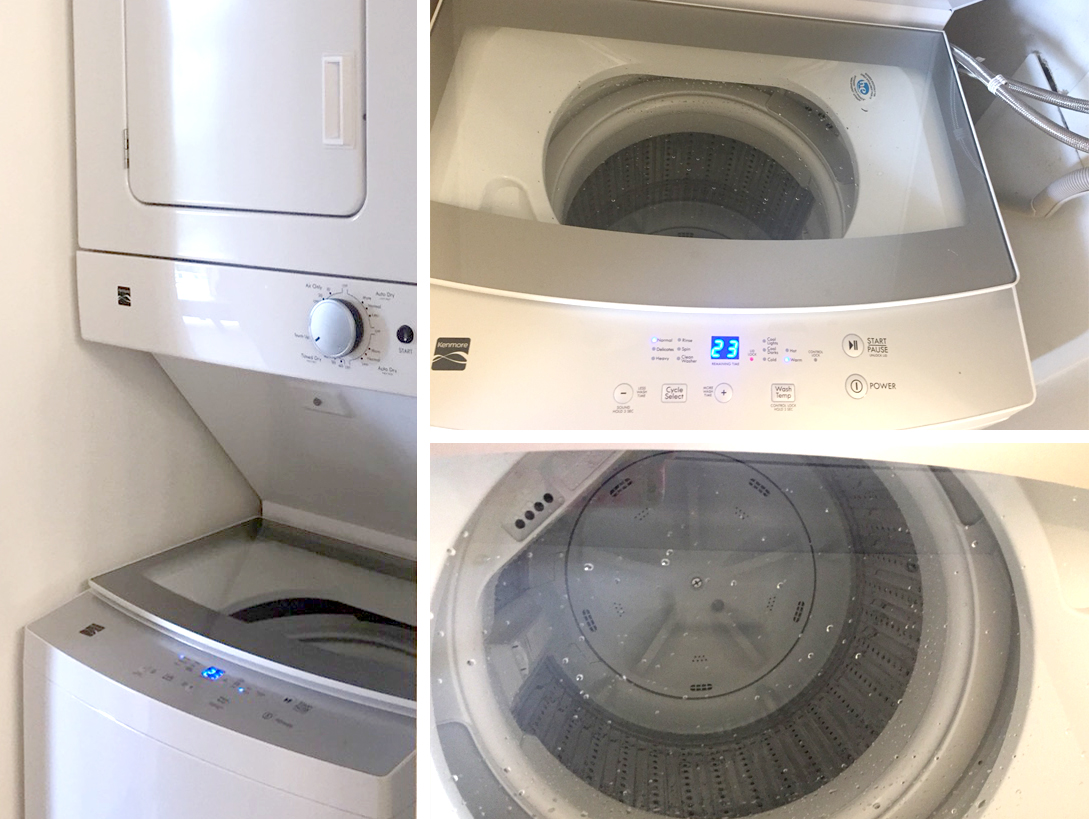 また、なんと言っても6Fのお部屋だけに唯一設置が許されている洗濯機が私達のお部屋にはあるのでわざわざコインランドリーに行かなくともお部屋で洗濯を済ませることができます。特に長期のご宿泊にはとっても助かります。もちろんご利用は無料です。