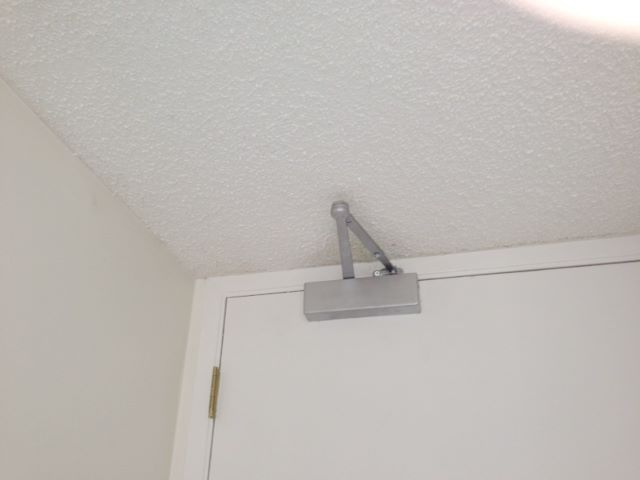 お部屋が6階で廊下がバーベキュー施設の屋外と直接つながっているため、部屋の窓と入り口のドアを同時に開けた時に強目の風が吹き込んで来る時があるので、その対策としてドアが急に閉まらないようにドアのブレーキを新しいものに取替えました。